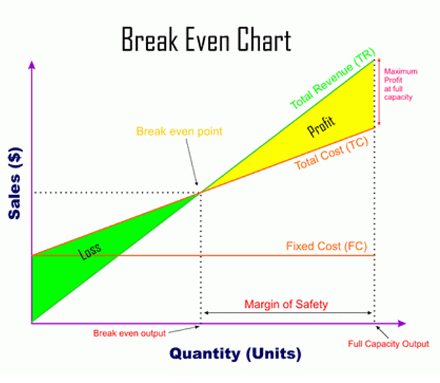 - Mark the revenue gained from this quantity on the line (Break Even Point)