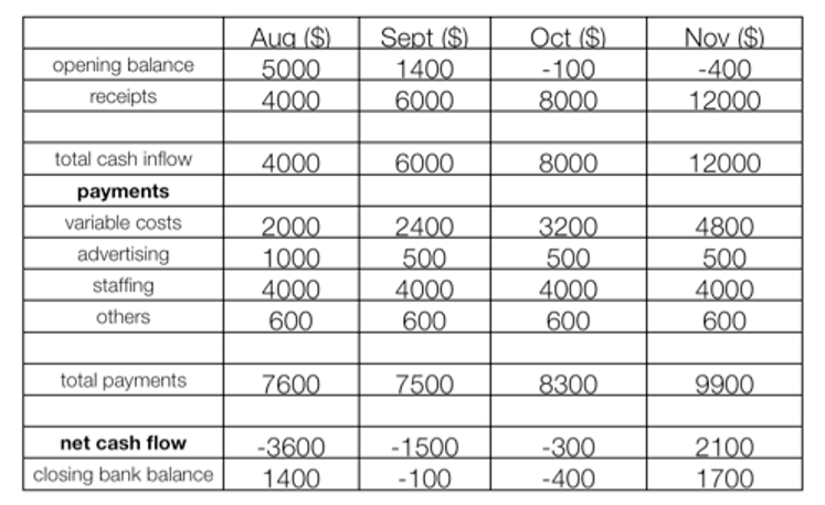 - Net cash flow – the differences between cash inflow and outflow per periodConstructing cash flow forecasts:
