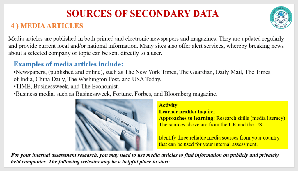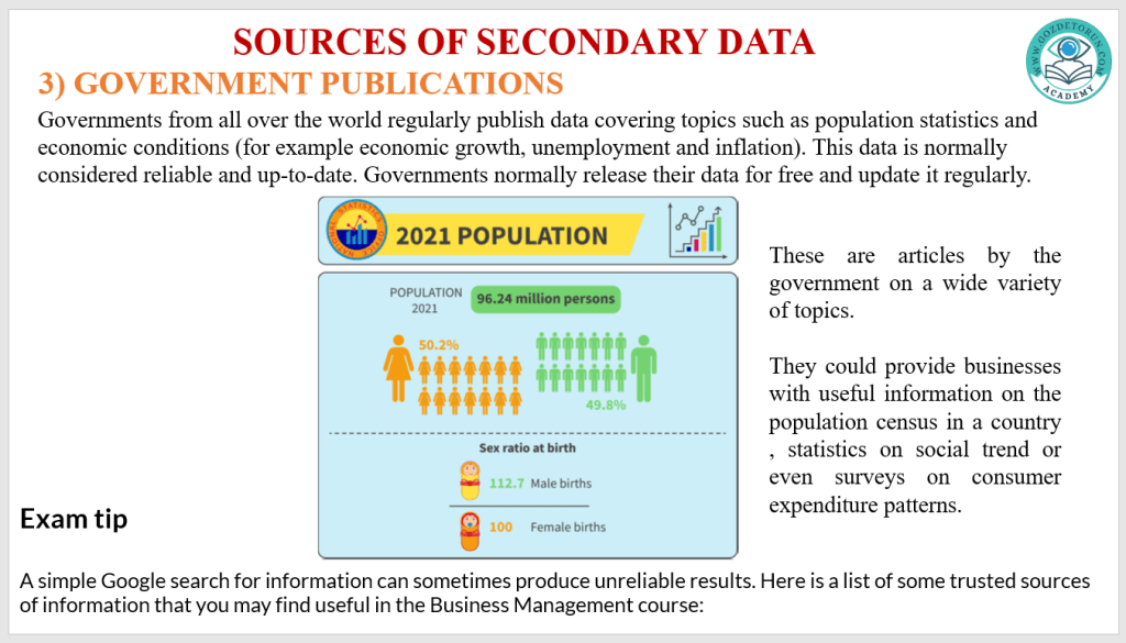 Identify one or two local or national government sources that you can use for your internal assessment research.These sources can show population or economic data and other local or national statistics.
