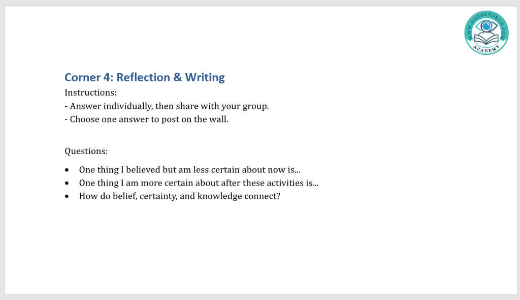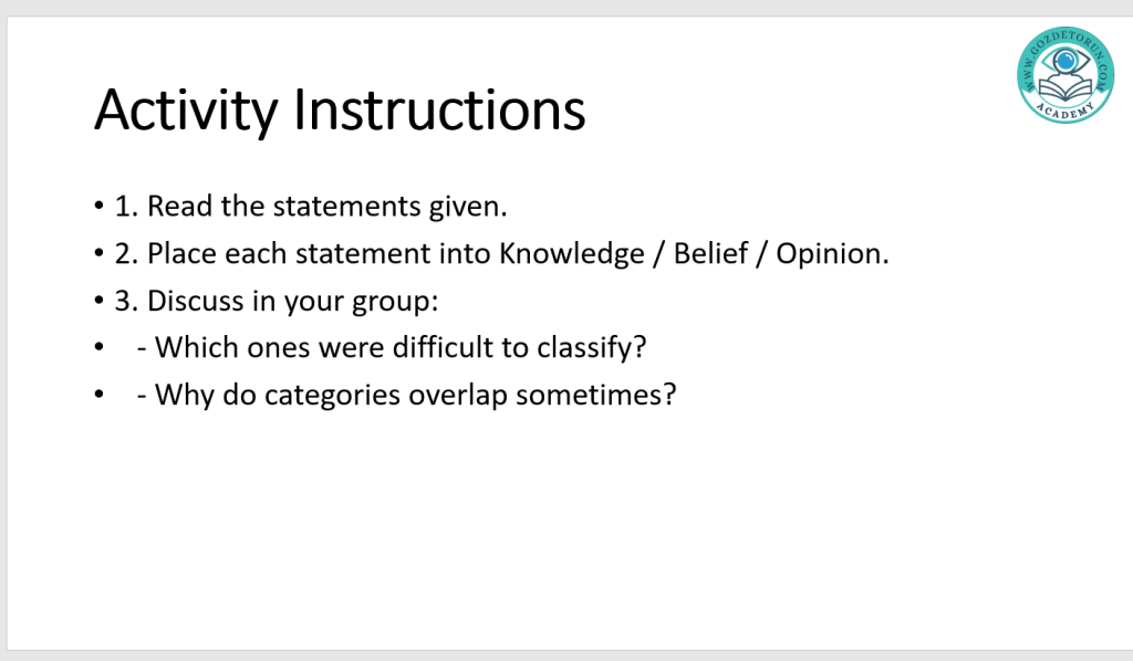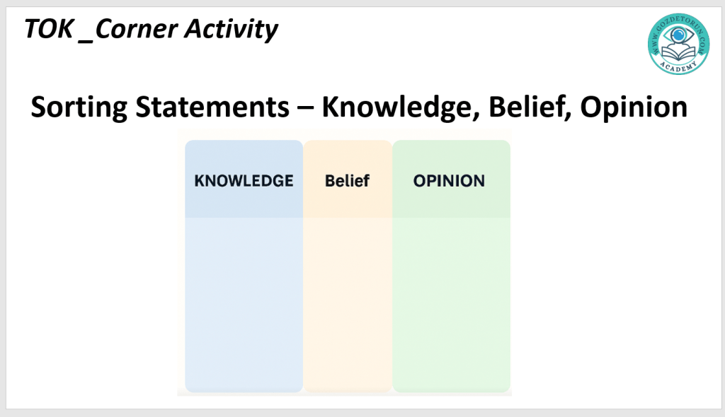 15 Eylül 20252 Ekim 2025 Gözde Torun TOK _Corner Activity 10th Grades knowledge-and-beliefİndir Bunu paylaş: X'te paylaşmak için tıklayın (Yeni pencerede açılır) X Facebook'ta paylaşmak için tıklayın (Yeni pencerede açılır) Facebook Beğen Yükleniyor... İlgili