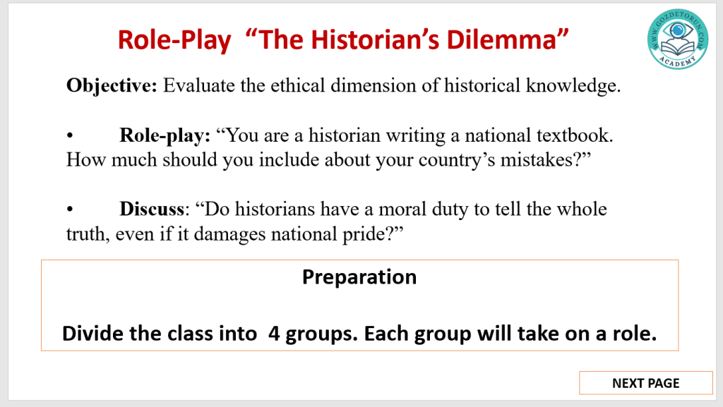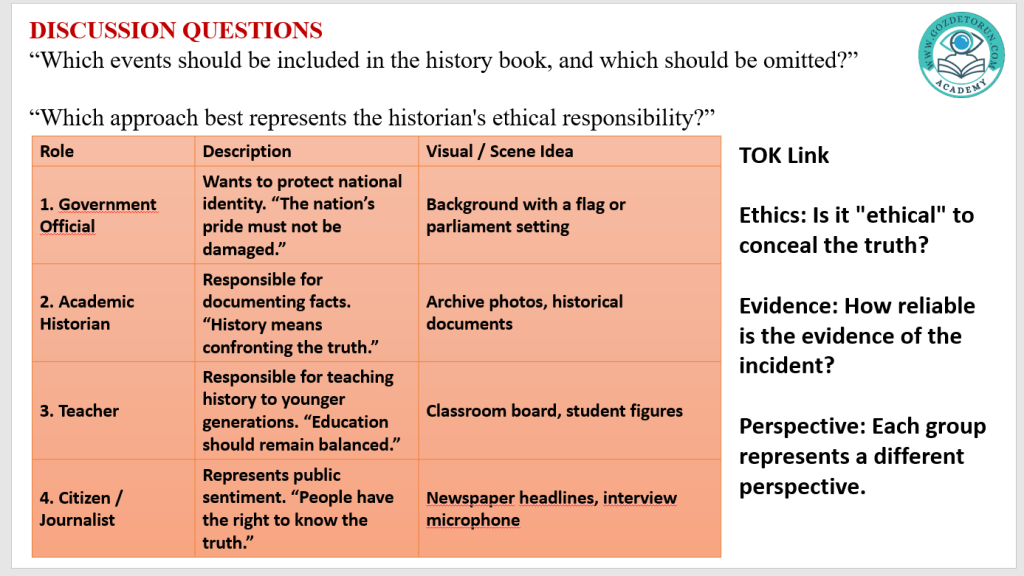 What kind of historical events does your school, exam board or country consider important enough for it to be studied and why? Do you agree with this selection of events? The selection of events as well as the interpretation of evidence almost inevitably carry with them an element of subjectivity. The choice of history textbooks and what does or does not become part of a nation’s history curriculum has been highly debated by politicians, authority figures, activists and educators. History lessons can be a powerful tool to shape and manipulate how we know.