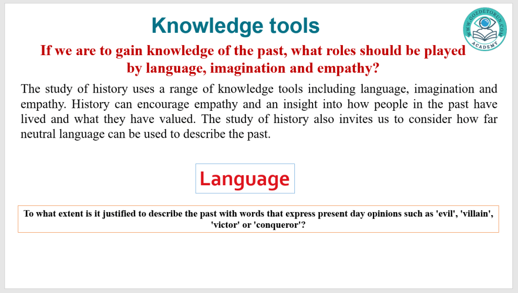 Many communities are keen to remember their past and some people feel that they need to ‘make history’ before they die. Language plays a substantial role in the recording of history and passing on of collective memory. Some knowledge communities draw on oral history, whereas others record data in writing or symbols. Much historical knowledge has been passed on through language via textbooks. The language of these textbooks is often emotionally coloured. Other (dominated) cultures were often represented as inferior and cruelties of imperial powers were either ignored or minimised.