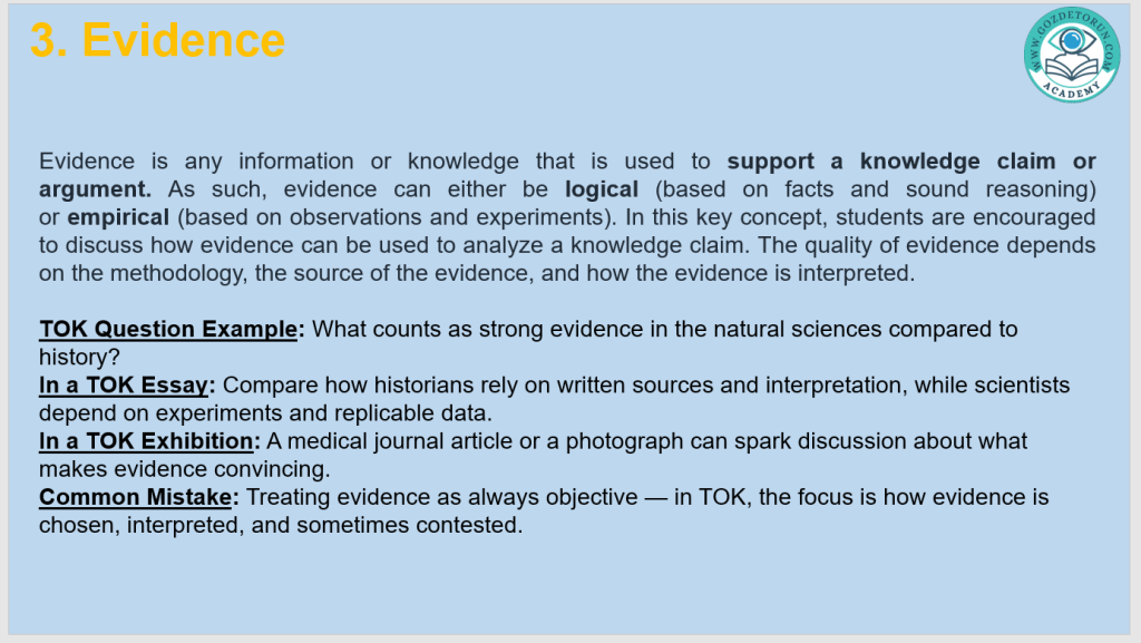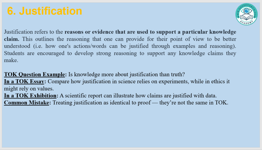 | Justification | Reasoning for accepting a belief as knowledge | Data used to back a theory |