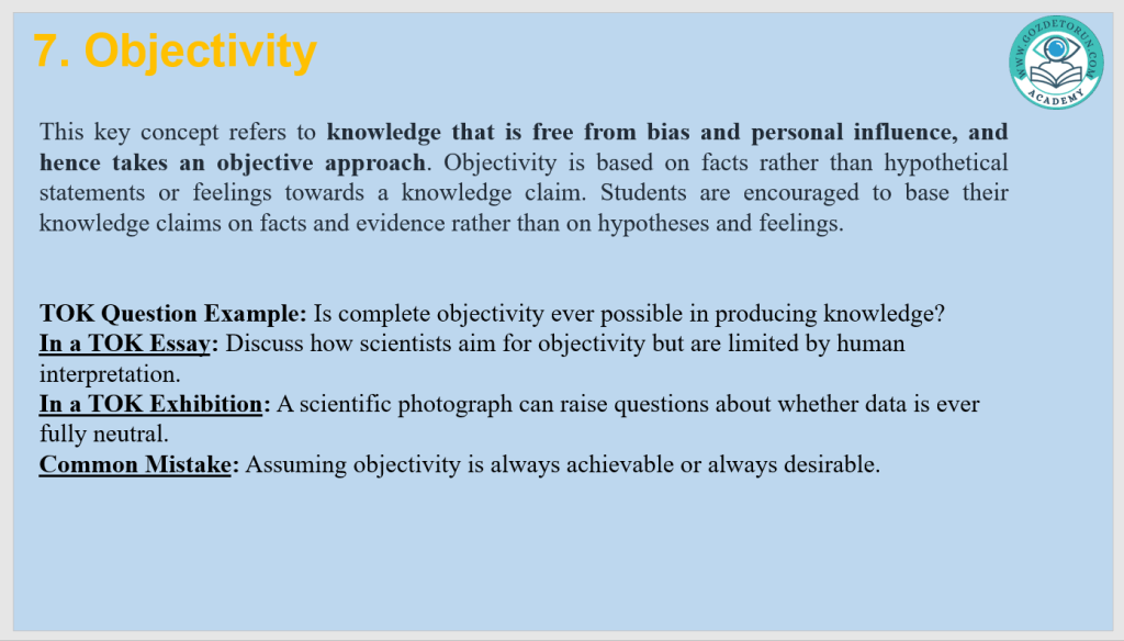 | Objectivity | Knowledge independent from personal bias | A journalist’s attempt at neutrality |