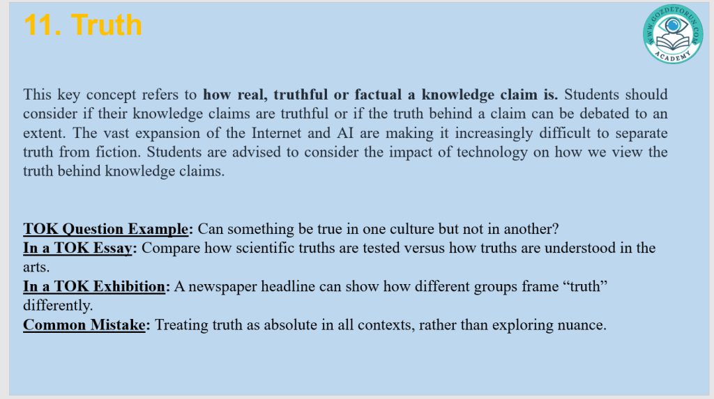| Truth | Belief or statement that aligns with reality | Conflicting news headlines |