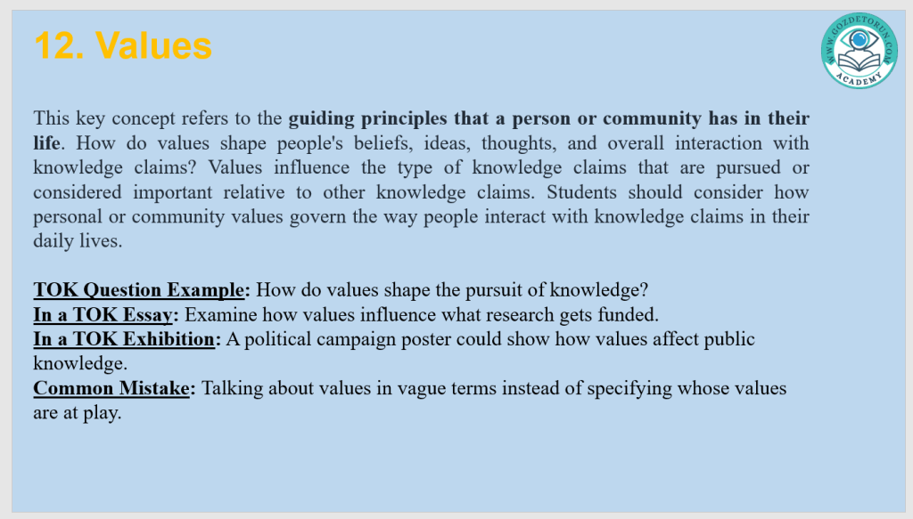 | Values | Beliefs about what is important or worthwhile | Funding choices in science |