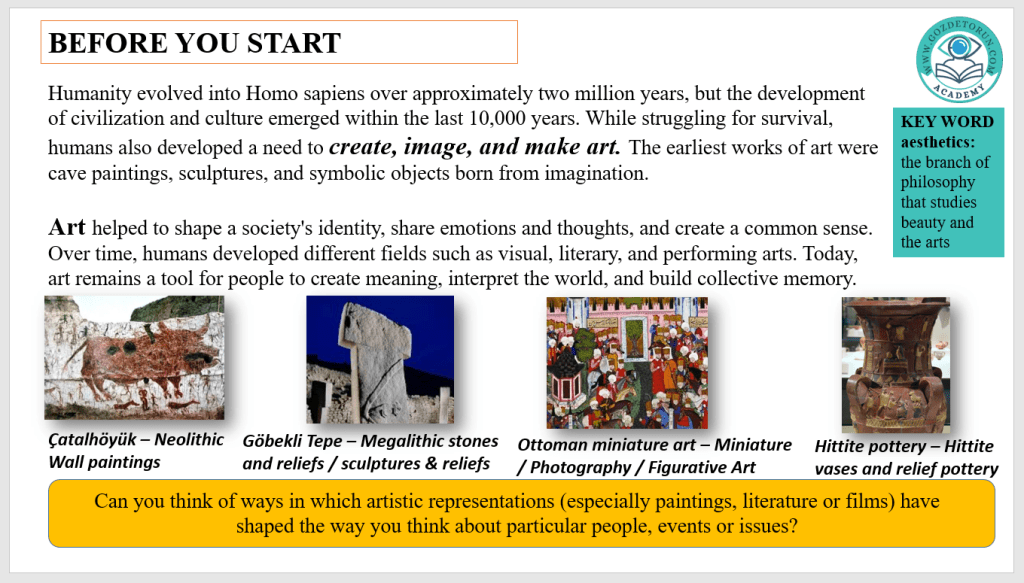 | Am I familiar with some of the functions of art: the power of images and the notion of beauty? | ||