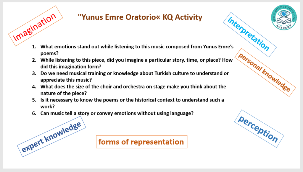 | Can I explain the importance of language, reason and emotion in relation to the arts? | ||